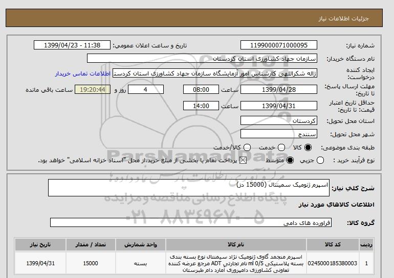 شرح کلی نیاز: اسپرم ژنومیک سمینتال (15000 دز)