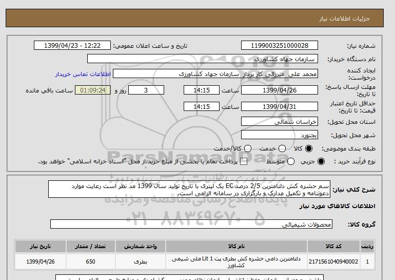 نام دستگاه خریدار: سازمان جهاد کشاورزی