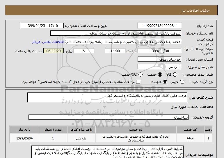 نام دستگاه خریدار:شرکت پالایش گاز شهید هاشمی نژاد - استان خراسان رضوی
