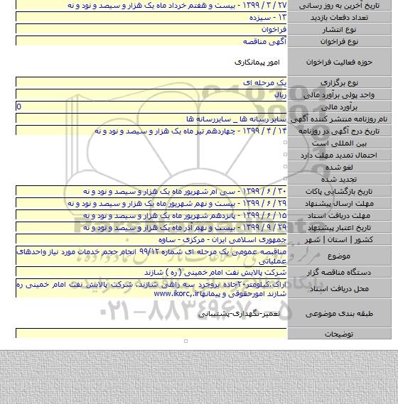 مناقبصه عمومی یک مرحله ای شماره ۹۹/۱۲ انجام حجم خدمات مورد نیاز واحدهای عملیاتی
