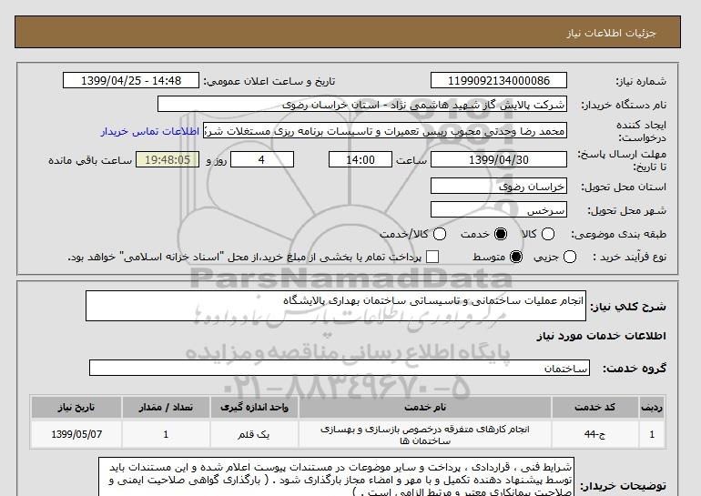 شرح کلی نیاز: انجام عملیات ساختمانی و تاسیساتی ساختمان بهداری پالایشگاه