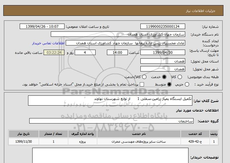 شرح کلی نیاز: تکمیل ایستگاه پمپاژ زرامین سفلی 1 از توابع شهرستان نهاوند