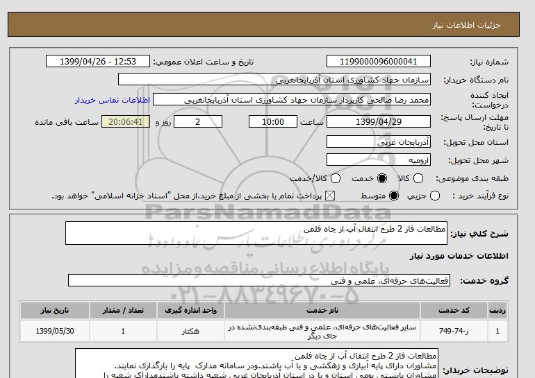 توضیحات خریدارمطالعات فاز 2 طرح انتقال آب از چاه فلمن