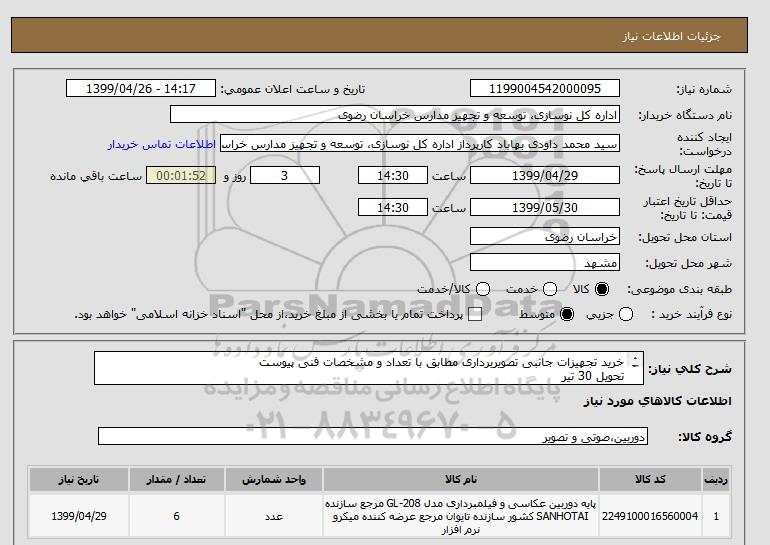 نام دستگاه خریدار:اداره کل نوسازی، توسعه و تجهیز مدارس خراسان رضوی