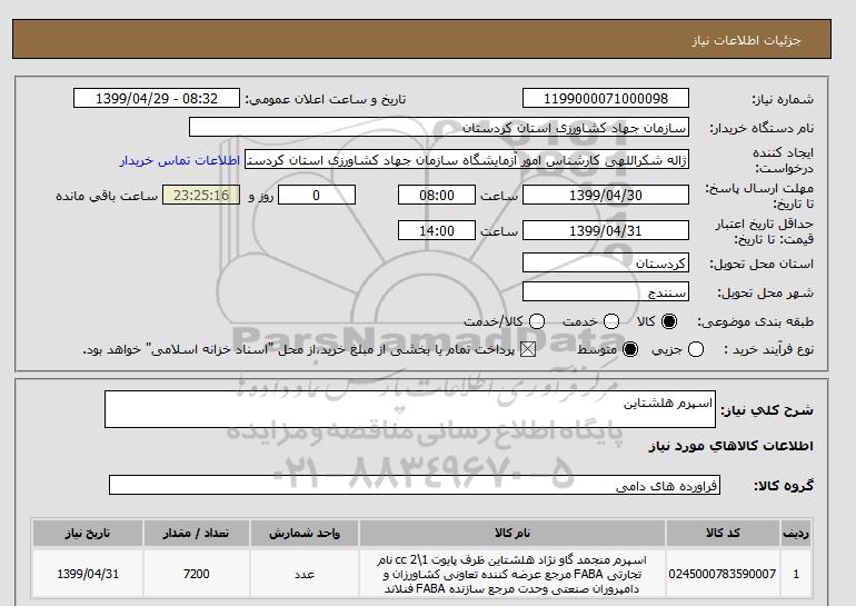 نام دستگاه خریدار:سازمان جهاد کشاورزی استان کردستان