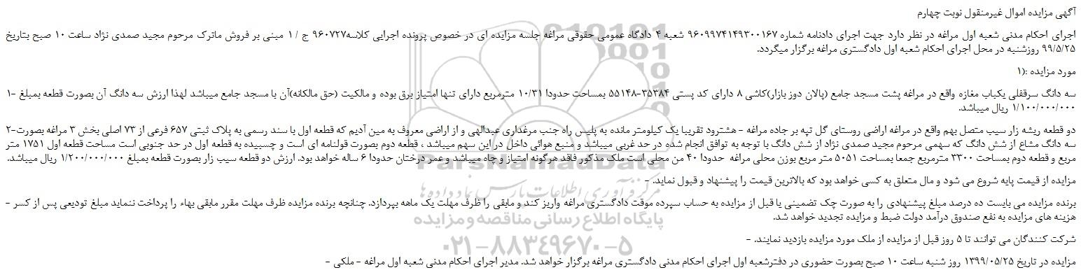 آگهی مزایده اموال غیرمنقول نوبت چهارم