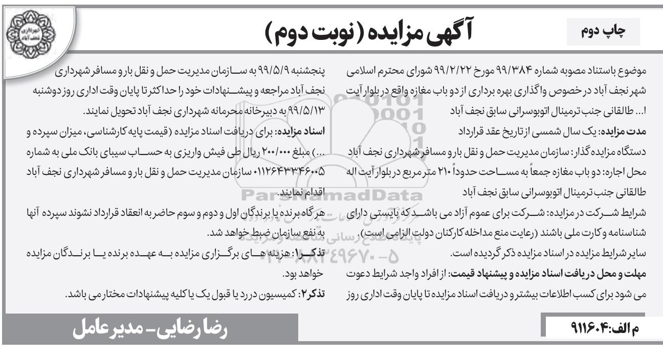 آگهی مزایده نوبت دوم - چاپ دوم ؟
