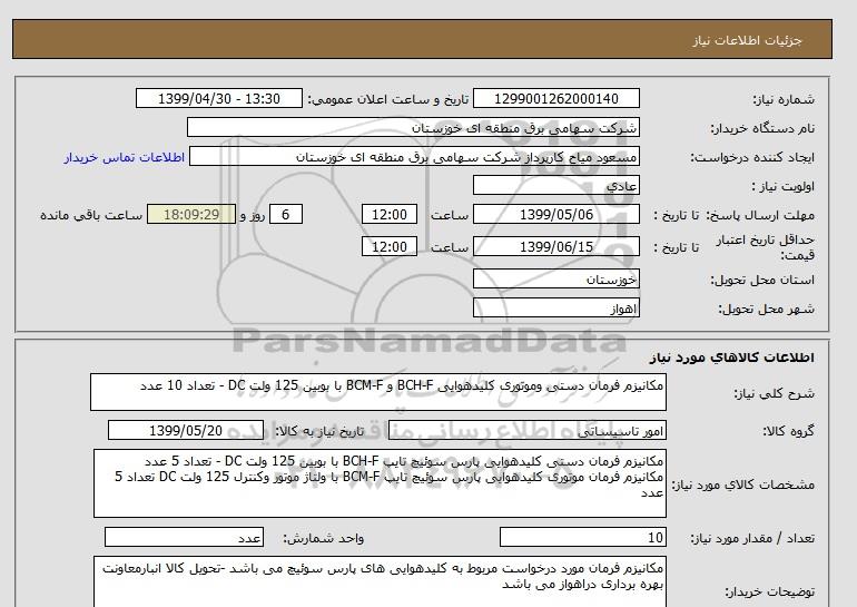 توضیحات خریدارمکانیزم فرمان مورد درخواست مربوط به کلیدهوایی های پارس سوئیچ می باشد -تحویل کالا انبارمعاونت بهره برداری دراهواز می باشد