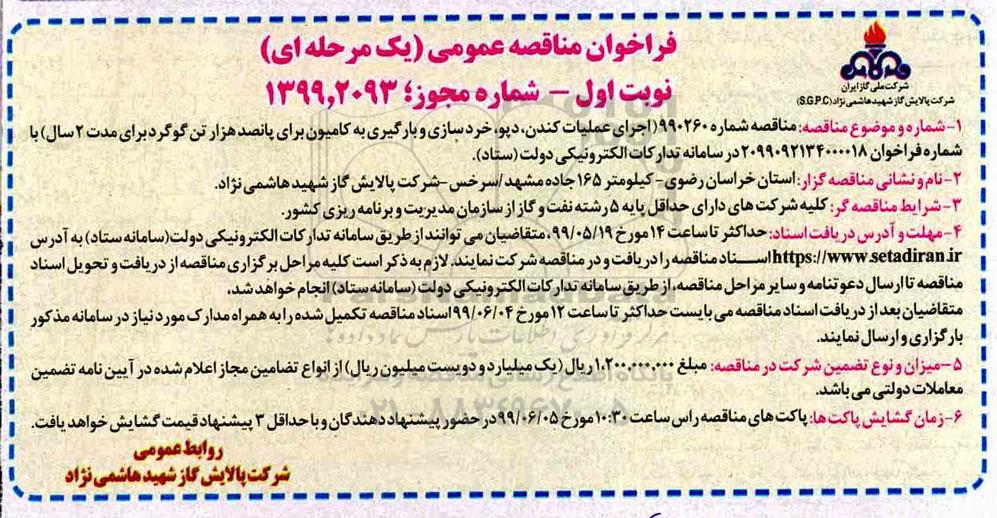 2- نام و نشانی مناقصه گزار: استان خراسان رضوی - کیلومتر 165 جاده مشهد / سرخس - شرکت پالایش گاز شهید هاشمی نژاد