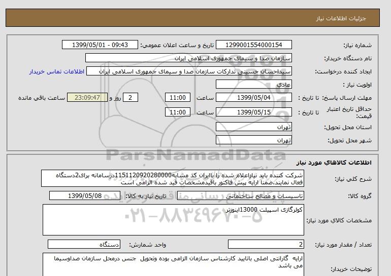 نام دستگاه خریدار:سازمان صدا و سیمای جمهوری اسلامی ایران