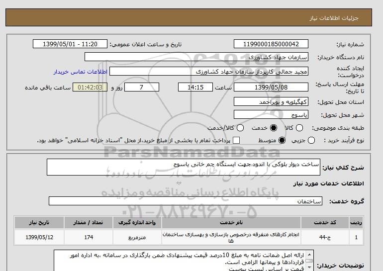 شرح کلی نیاز: ساخت دیوار بلوکی با اندود جهت ایستگاه چم خانی یاسوج