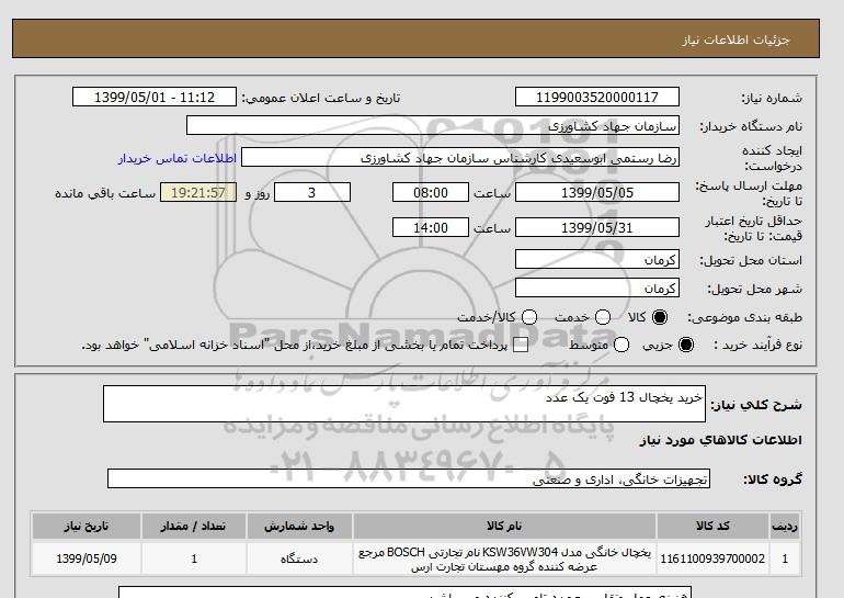 شرح کلی نیاز: خرید یخچال 13 فوت یک عدد