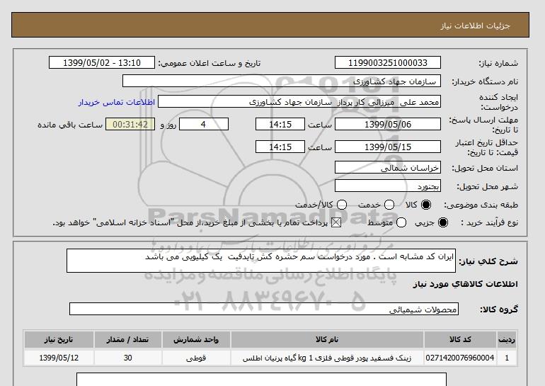 شرح کلی نیاز: ایران کد مشابه است . مورد درخواست سم حشره کش تایدفیت یک کیلیویی می باشد