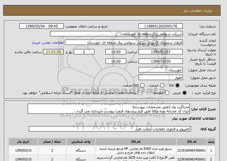 نام دستگاه خریدار:شرکت سهامی برق منطقه ای خوزستان
