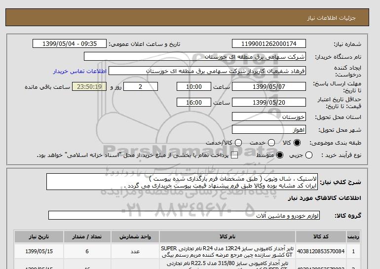 استعلام لاستیک ، شال وتیوپ ( طبق مشخصات فرم بارگذاری شده پیوست ) ایران کد مشابه بوده وکالا طبق فرم پیشنهاد قیمت پیوست خریداری می گردد ., استعلام لاستیک ، شال وتیوپ ( طبق مشخصات فرم بارگذاری شده پیوست ) ایران کد مشابه بوده وکالا طبق فرم پیشنهاد قیمت پیوست خریداری می گردد .