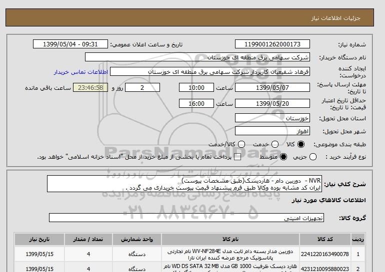 استعلام NVR - دوربین دام - هاردیسک(طبق مشخصات پیوست) ایران کد مشابه بوده وکالا طبق فرم پیشنهاد قیمت پیوست خریداری می گردد ., استعلام NVR - دوربین دام - هاردیسک(طبق مشخصات پیوست) ایران کد مشابه بوده وکالا طبق فرم پیشنهاد قیمت پیوست خریداری می گردد .