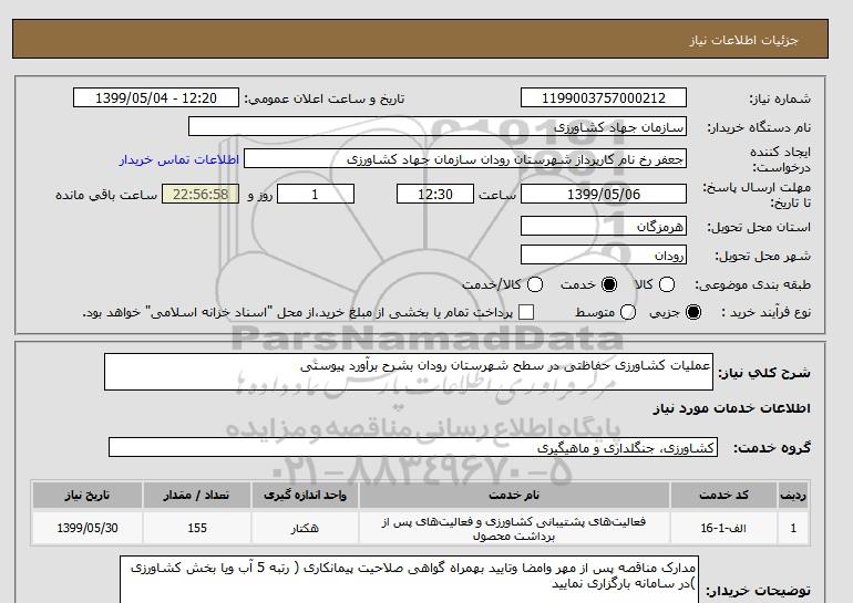 شرح کلی نیاز: عملیات کشاورزی حفاظتی در سطح شهرستان رودان بشرح برآورد پیوستی