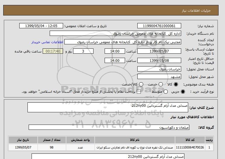 شرح کلی نیاز: صندلی مدل آرام گستردانین 212ny00
