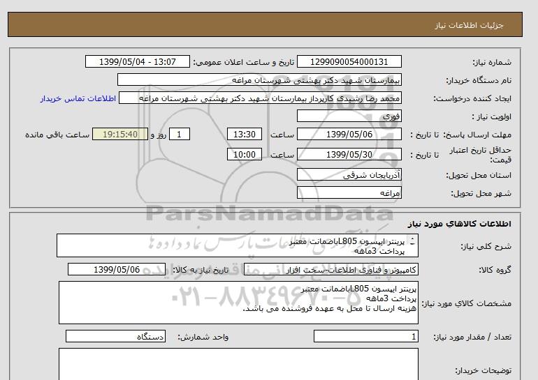 نام دستگاه خریدار:بیمارستان شهید دکتر بهشتی شهرستان مراغه