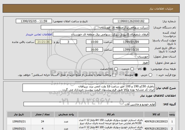 شرح کلی نیاز: باطری 150و 190 و 100 آمپر ساعت 12 ولت اتمی برند سپاهان