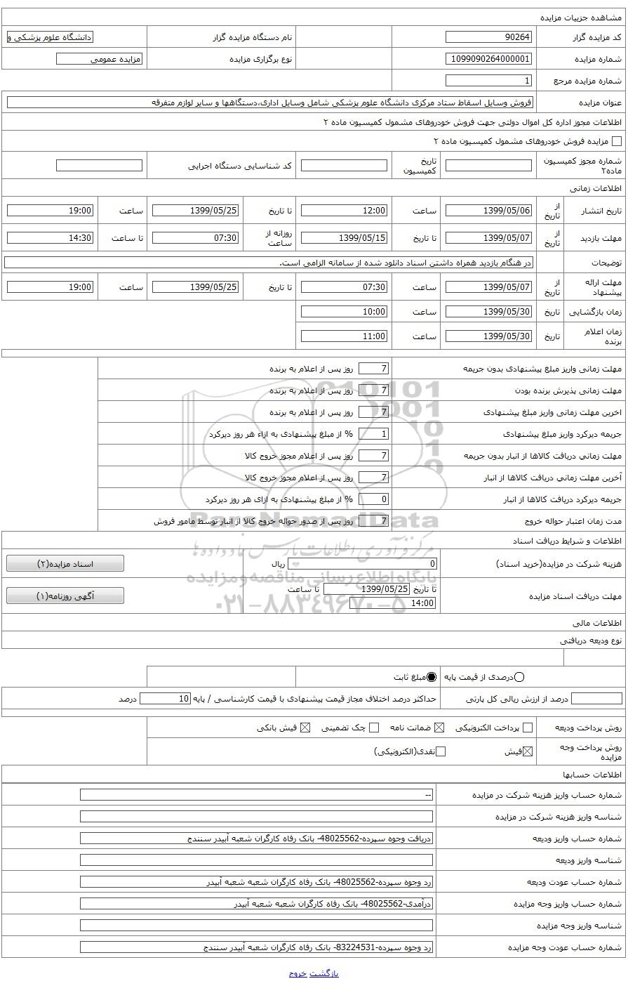 کد مزایده گزار90264نام دستگاه مزایده گزاردانشگاه علوم پزشکی و خدمات بهداشتی، درمانی استان کردستان