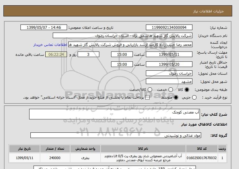 شرح کلی نیاز: آب معدنی کوچک