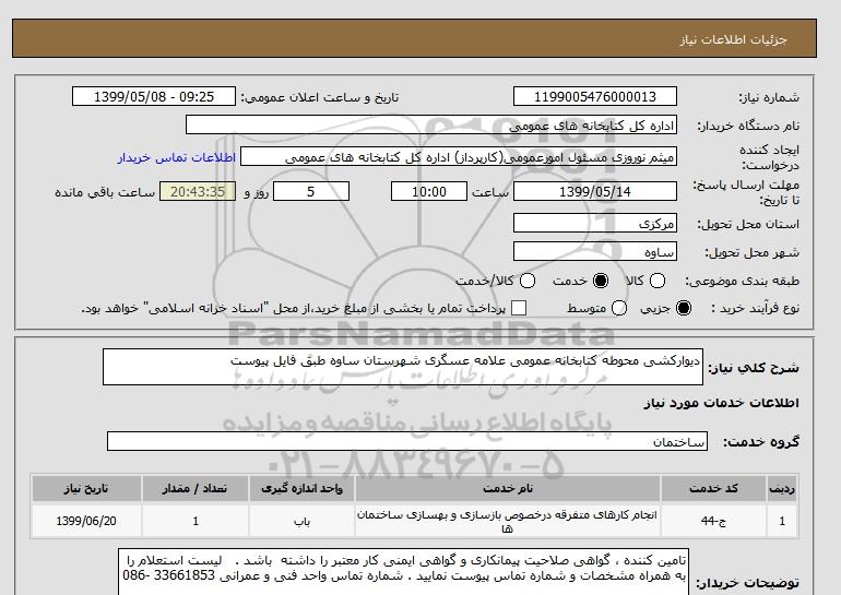 شرح کلی نیاز: دیوارکشی محوطه کتابخانه عمومی علامه عسگری شهرستان ساوه طبق فایل پیوست
