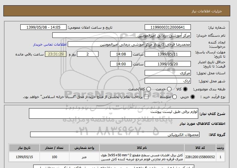 شرح کلی نیاز: لوازم برقی طبق لیست پیوست