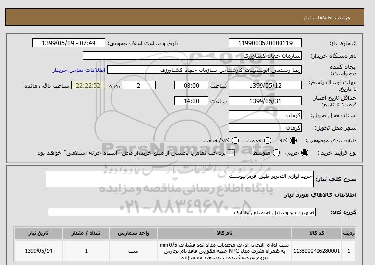 شرح کلی نیاز: خرید لوازم التحریر طبق فرم پیوست