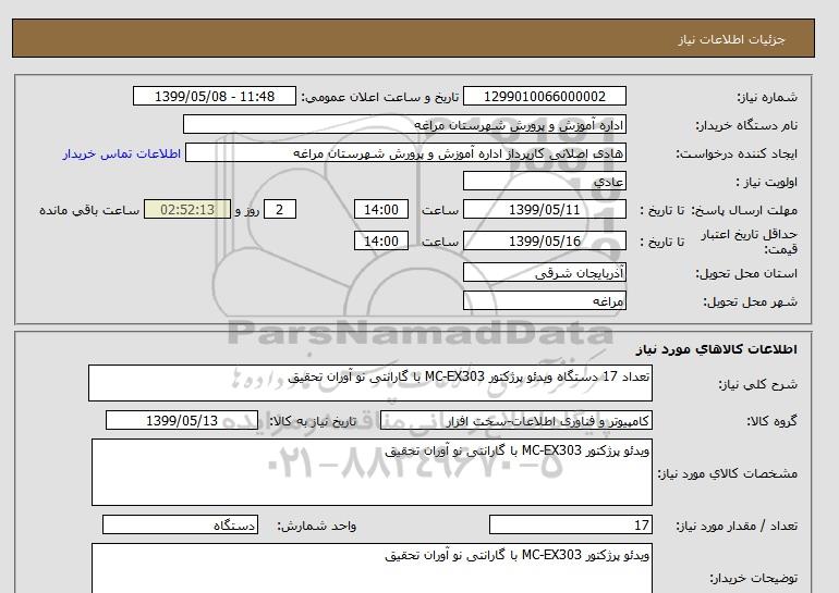 شرح کلی نیاز: تعداد 17 دستگاه ویدئو پرژکتور MC-EX303 با گارانتی نو آوران تحقیق