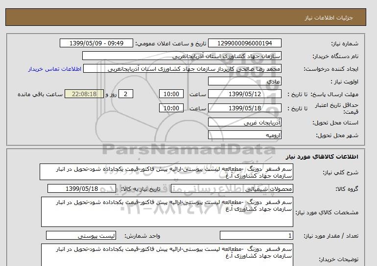 نام دستگاه خریدار:سازمان جهاد کشاورزی استان آذربایجانغربی