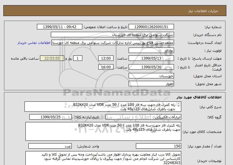 نام دستگاه خریدار:شرکت سهامی برق منطقه ای خوزستان