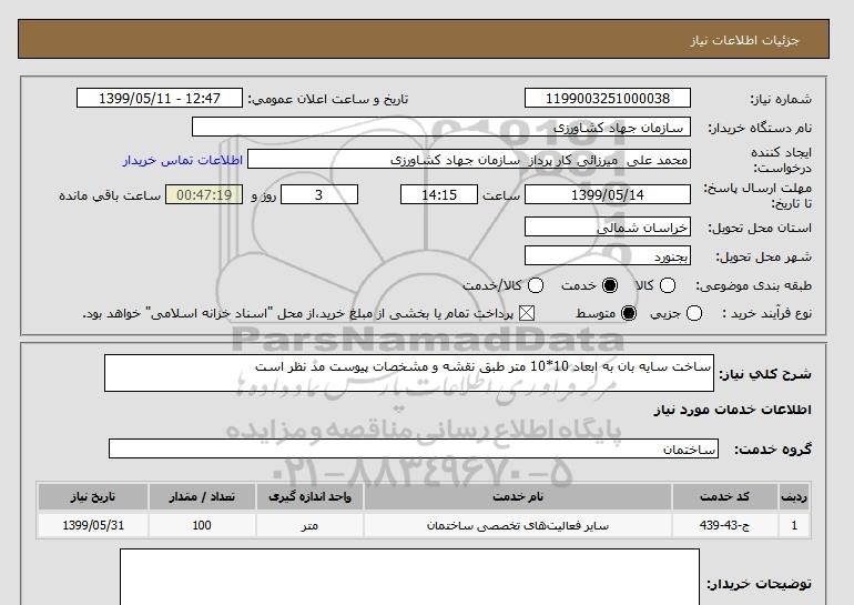 شرح کلی نیاز: ساخت سایه بان به ابعاد 10*10 متر طبق نقشه و مشخصات پیوست مد نظر است
