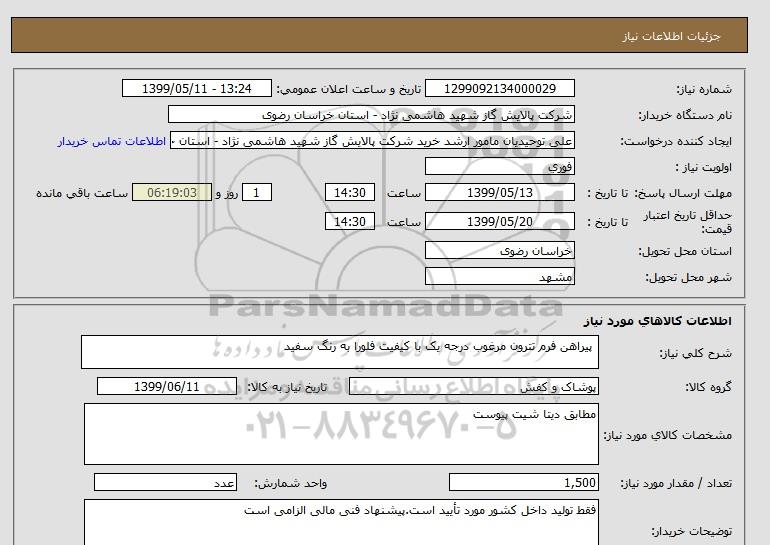 نام دستگاه خریدار:شرکت پالایش گاز شهید هاشمی نژاد - استان خراسان رضوی