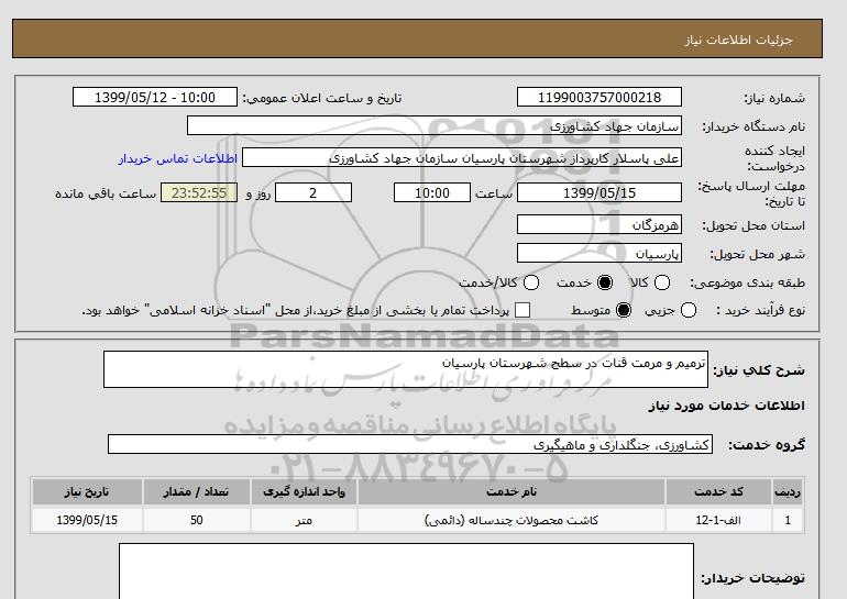 استعلام ترمیم و مرمت قنات در سطح شهرستان پارسیان, استعلام ترمیم و مرمت قنات در سطح شهرستان پارسیان