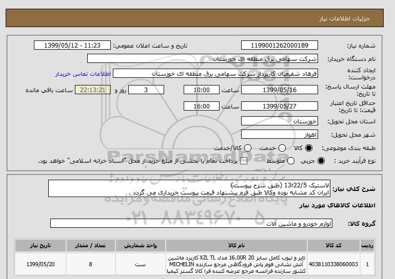 شرح کلی نیاز: لاستیک 13r22/5 (طبق شرح پیوست)