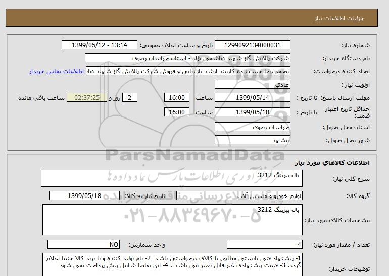 نام دستگاه خریدار:شرکت پالایش گاز شهید هاشمی نژاد - استان خراسان رضوی