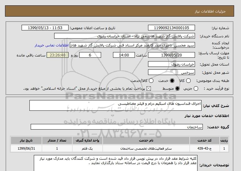 شرح کلی نیاز: اجرای فنداسیون های اسکیم درام و فیلتر مغناطیسی