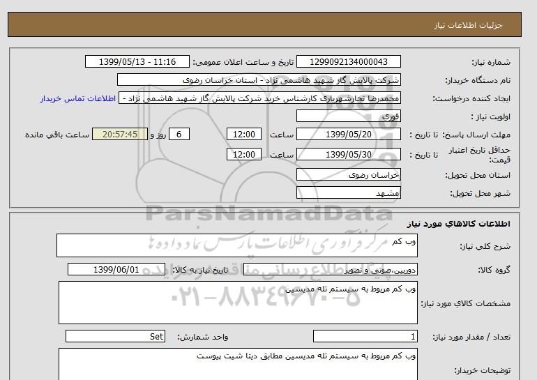 نام دستگاه خریدار:شرکت پالایش گاز شهید هاشمی نژاد - استان خراسان رضوی