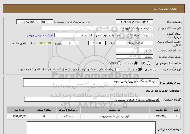 شرح کلی نیاز: اجاره 8 دستگاه خودروبرابرشرع پیوست