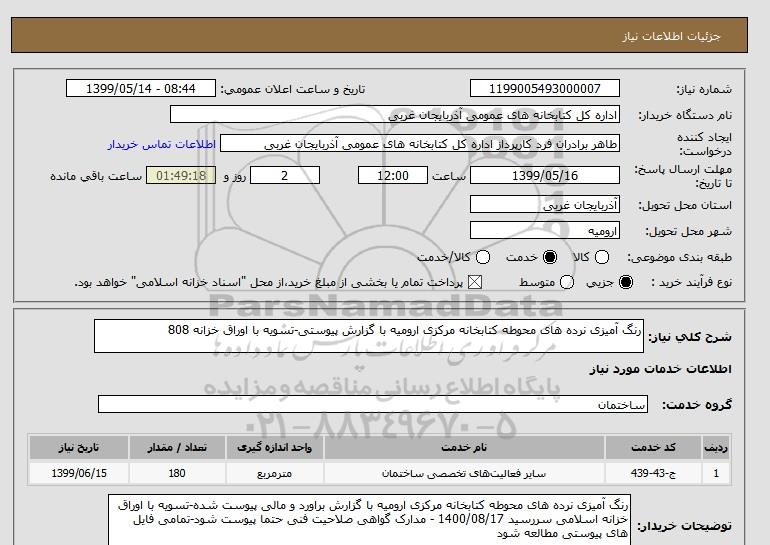 استعلام رنگ آمیزی نرده های محوطه کتابخانه مرکزی ارومیه با گزارش پیوستی-تسویه با اوراق خزانه 808, استعلام رنگ آمیزی نرده های محوطه کتابخانه مرکزی ارومیه با گزارش پیوستی-تسویه با اوراق خزانه 808