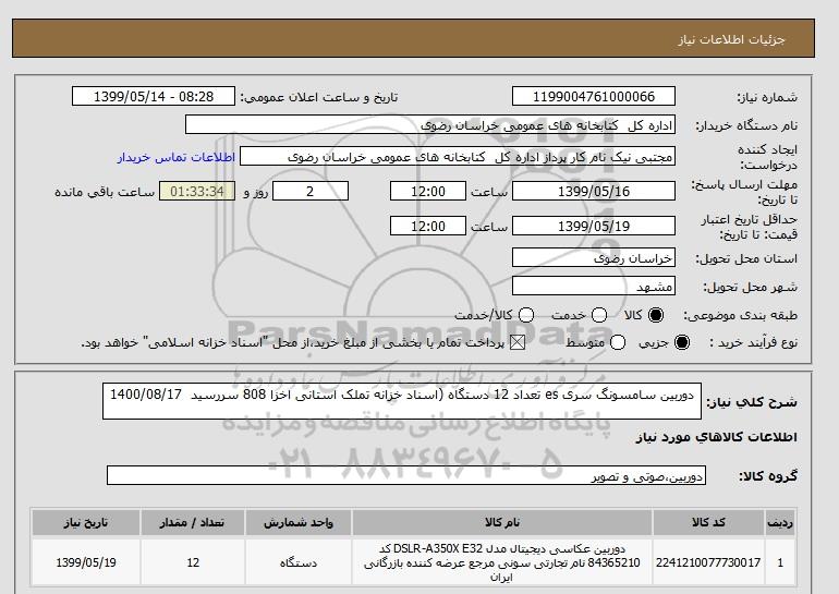 توضیحات خریدار دوربین سامسونگ سری es تعداد 12 دستگاه (اسناد خزانه تملک استانی اخزا 808 سررسید 1400/08/17