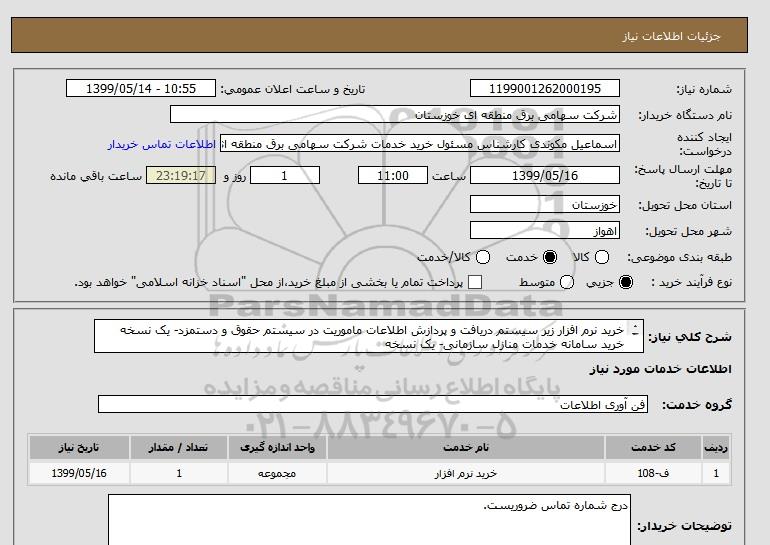 نام دستگاه خریدار:شرکت سهامی برق منطقه ای خوزستان