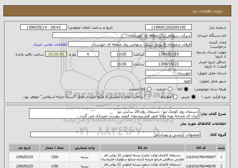 شرح کلی نیاز: دستمال رول کوچک تنو - دستمال رول 20 سانتی تنو