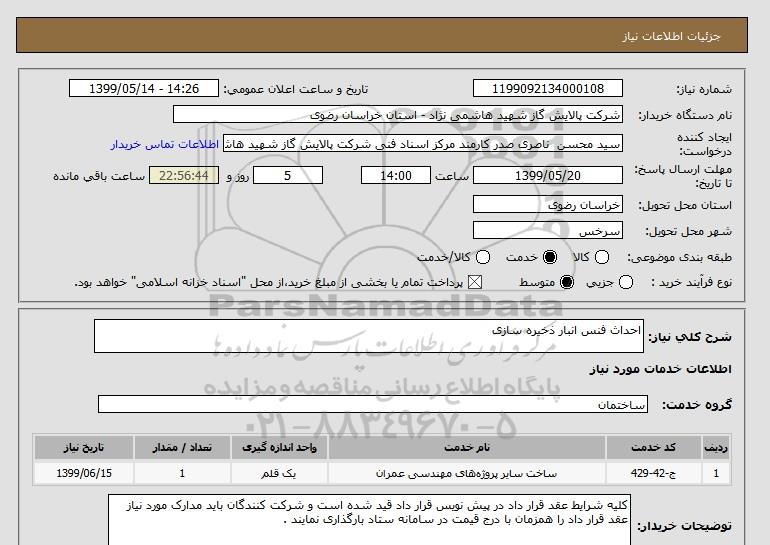 شرح کلی نیاز: احداث فنس انبار ذخیره سازی
