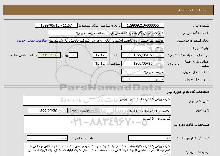 نام دستگاه خریدار:شرکت پالایش گاز شهید هاشمی نژاد - استان خراسان رضوی
