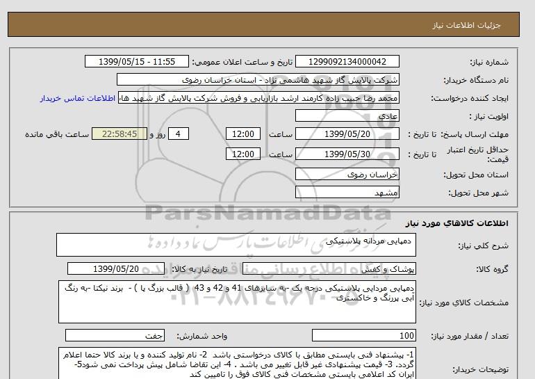 نام دستگاه خریدار:شرکت پالایش گاز شهید هاشمی نژاد - استان خراسان رضوی