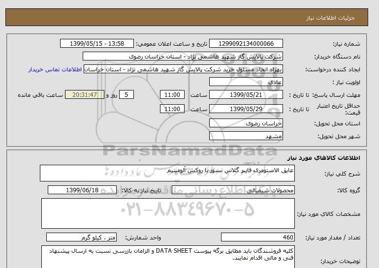 نام دستگاه خریدار:شرکت پالایش گاز شهید هاشمی نژاد - استان خراسان رضوی