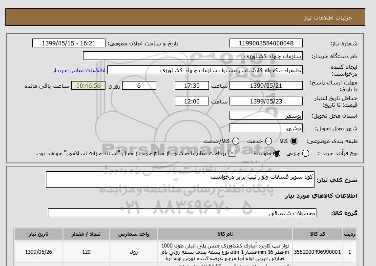 شرح کلی نیاز: کود سوپر فسفات ونوار تیپ برابر درخواست