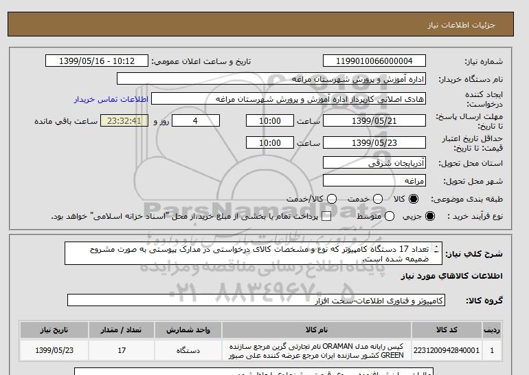 نام دستگاه خریدار:اداره آموزش و پرورش شهرستان مراغه